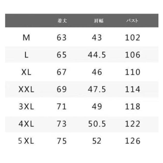 | サイズについての説明 | M L XL 2XL 3XL 4XL サイズ:写真通り ※上記サイズは平置き実寸になります。サイズ表の実寸法は商品によって1-3cm程度の誤差がある場合がございます。 |