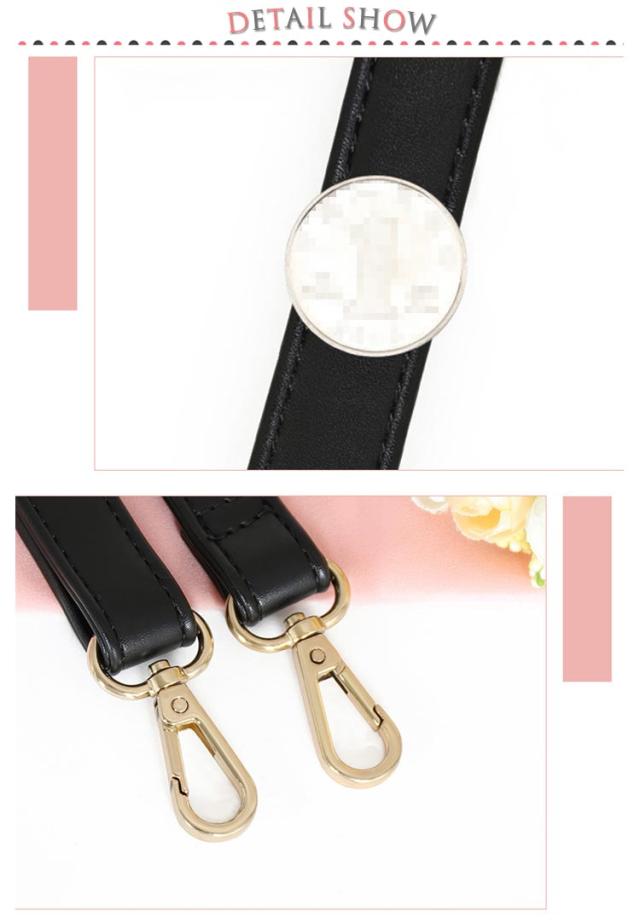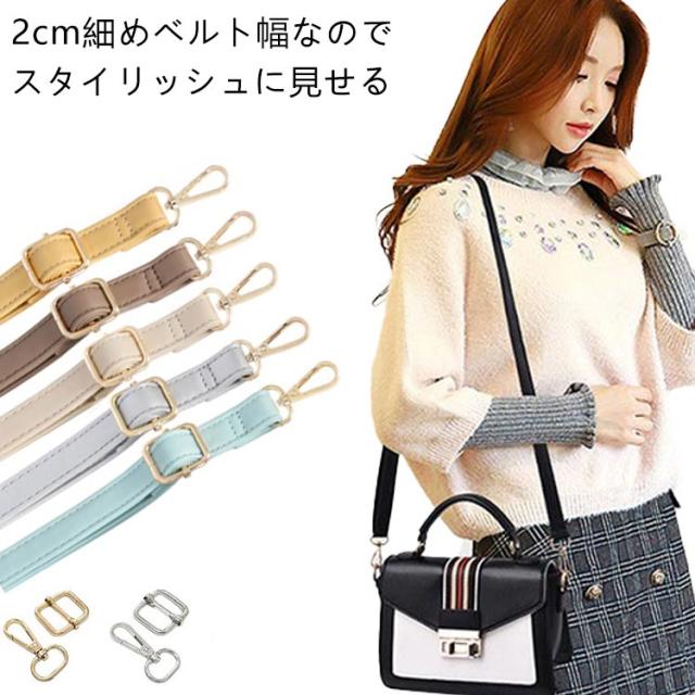 | 2cm細めベルト幅なのでスタイリッシュに見せる ストラップは70cm〜130cmまでの間で調整可能 金具もゴールド、ブラック、シルバー3タイプが選べる! 取り付けも簡単、ワンタッチで装着 | |