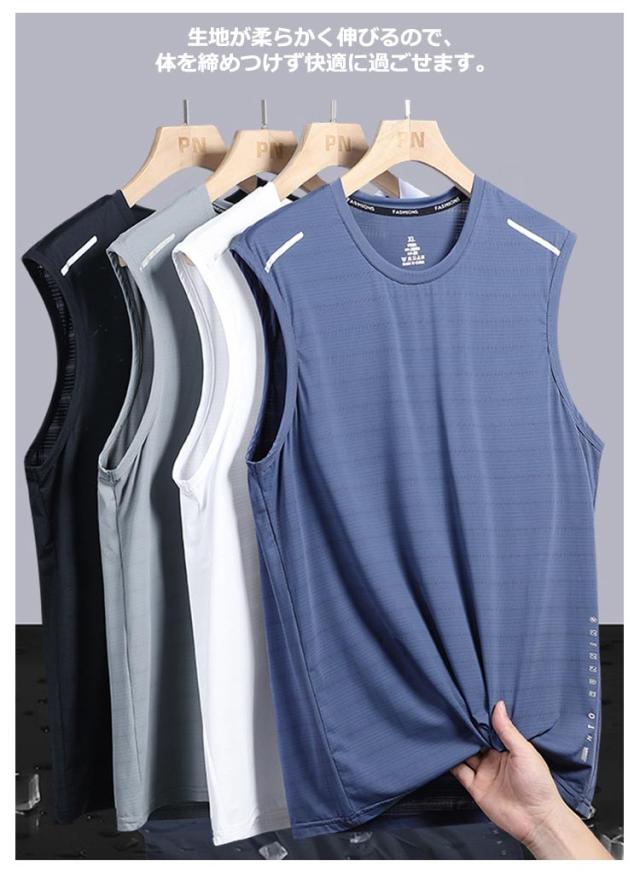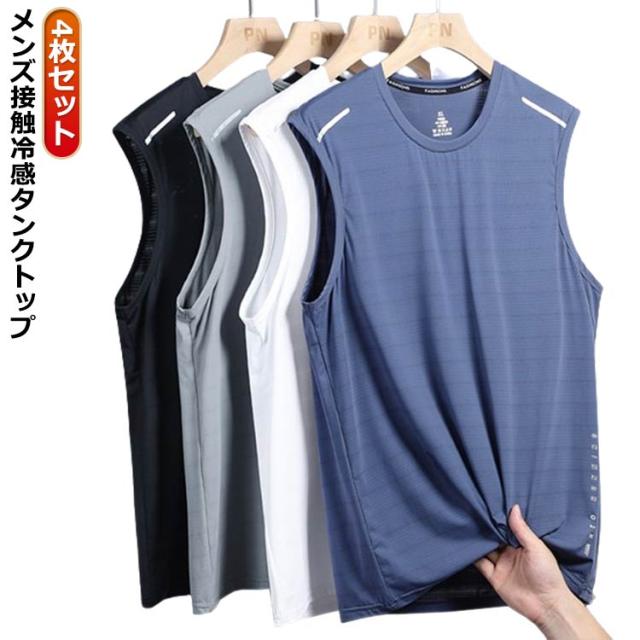 4枚セット タンクトップ メンズ ノースリーブ 接触冷感 トップス ドライ メッシュ ストレッチ 吸汗 速乾 インナー 男性 メッシュtシャツ シンプル 伸縮性 ランニングシャツ スポーツウエア ジム トレーニングウェア 送料無料