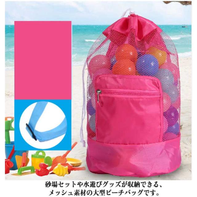 ビーチバッグ メッシュ 巾着袋 子供 キッズ メッシュバッグ 大きい 大容量 ビーチ おもちゃ収納袋 おもちゃ入れ 砂場 砂遊び 水遊び メッシュ巾着袋 防水 洗える 軽い お砂場バッグ 砂場セット収納 砂遊び道具入れ レジャー 【送料無料】