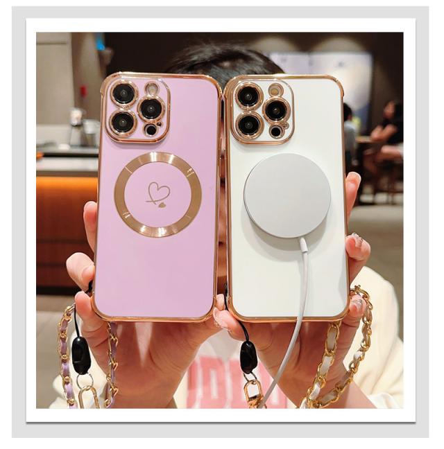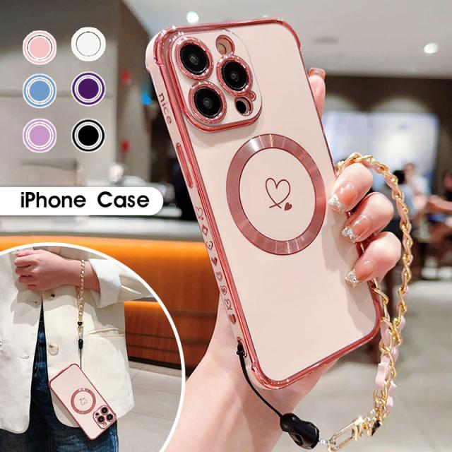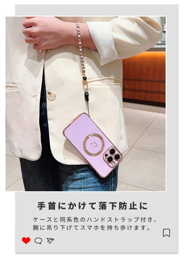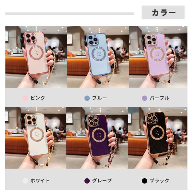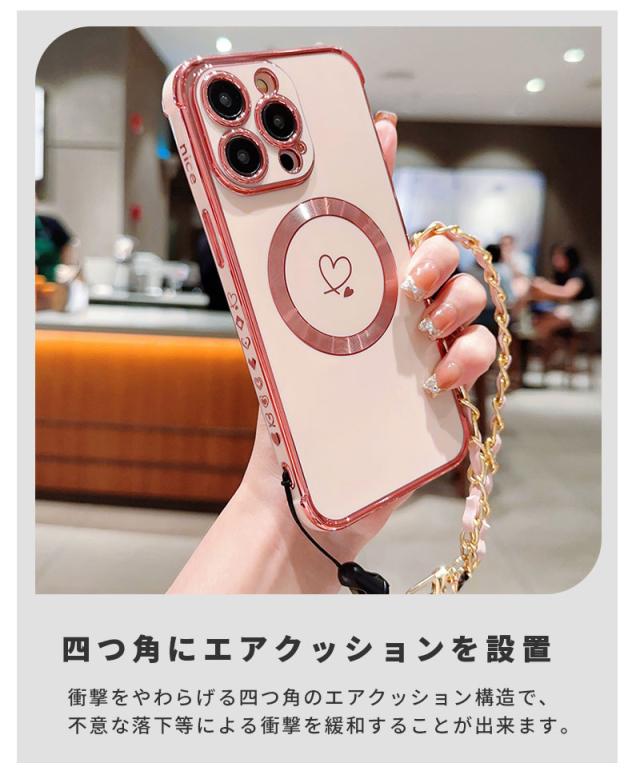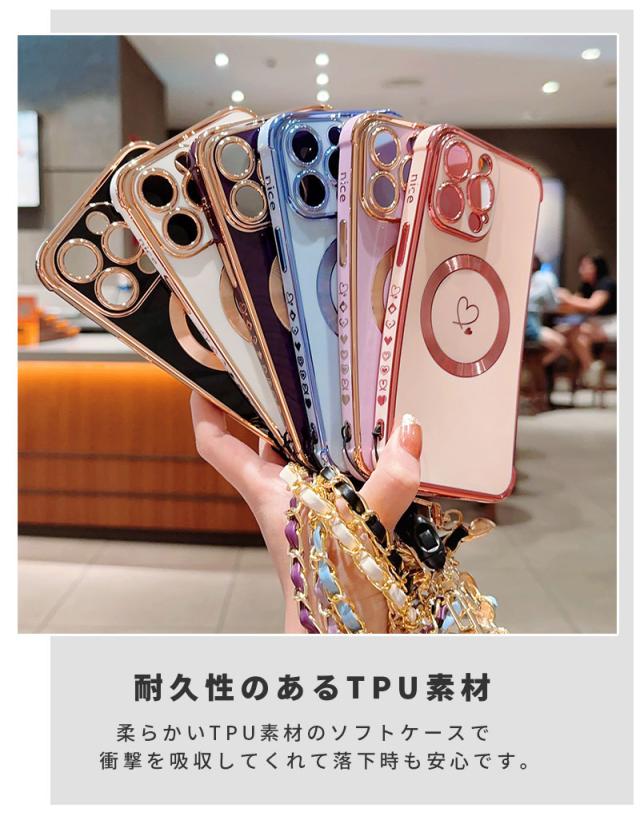 スマホケース iPhone 15 15plus 15pro max 14Pro max 14Pro 14Plus iPhone 13 13 Pro 13ProMax iPhone 12 12 Pro 12ProMax iPhone11 ケース スリム アイフォン 15 カバー ソフトケース メッキ加工 チェーン付き Magsafe対応 iphoneカバー 耐衝撃 携帯ケース 大人 韓国風