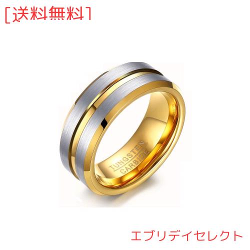 Rockyu ジュエリー 人気 アクセサリー タングステン 指輪 メンズ ゴールドリング シルバー 8mm 金 23号