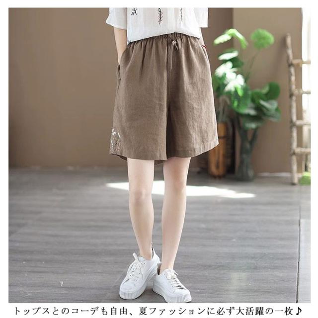 ショートパンツ ハーフパンツ 5分丈 ショートパンツ ボトムス 薄手 綿麻風 涼しい レディース ゆったり 短パン ワイドパンツ 可愛い ガウチョパンツ 膝上 夏 着痩せ 綿麻ハーフパンツ 薄手 ゆったり 体型カバー 無地 シンプル 部屋着