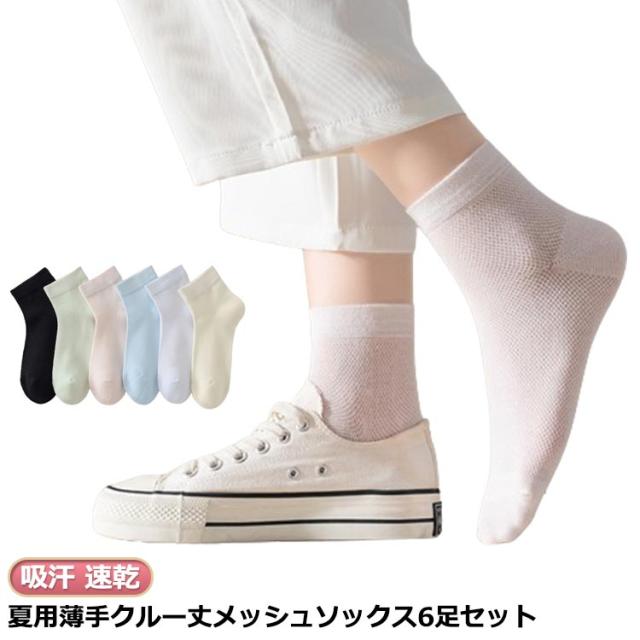 白 綿 6足セット 涼しい 靴下 学生 高校生 送料無料 薄手 涼しい 黒 メッシュ クルー丈 女子 レディース スクール 6足セット 吸汗 速乾 夏用 通勤 通学 蒸れない 臭わない 抗菌 防臭 無地