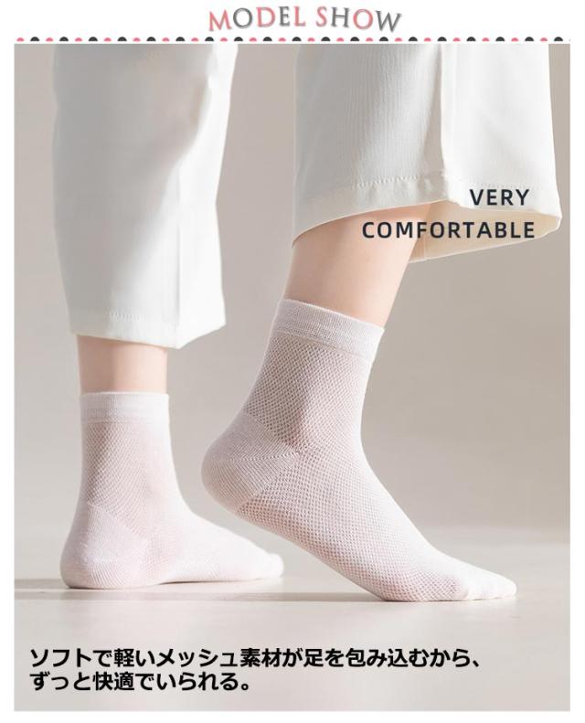 | 夏用薄手クルー丈メッシュソックス6足セット。 ソフトで軽いメッシュ素材が足を包み込むから、ずっと快適でいられる。 伸縮性も良く、ソフトな肌触りの履き心地・フィット感。 様々なシューズと合わせ易く、 オールシーズンで活躍してくれる使い勝手の良い靴下。 | |