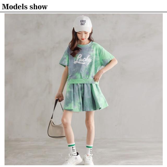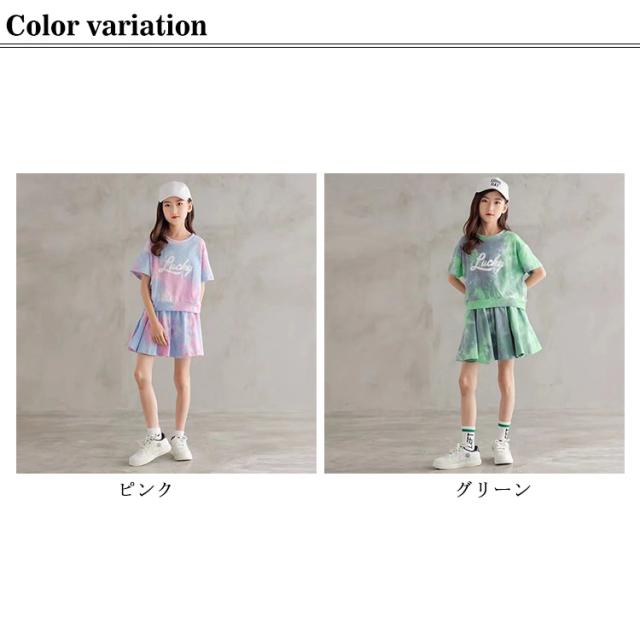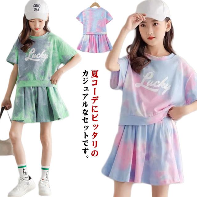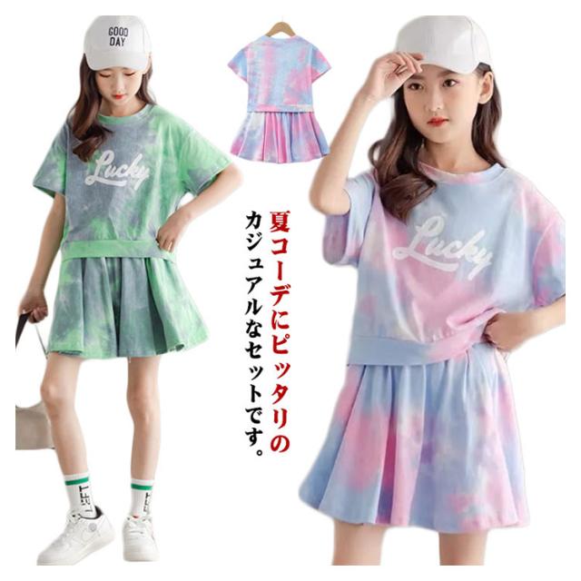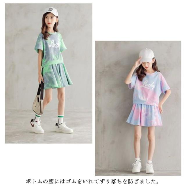 スカート 韓国子供服 キッズ 130 上下セット 女の子 tシャツ ベビー ビッグシルエット ジャージ 子供服 女子 半袖 140 120 パジャマ グラデーション セットアップ スウェット ダンス衣装 韓国子供服 150 かわいい 小学生 160 170 夏服