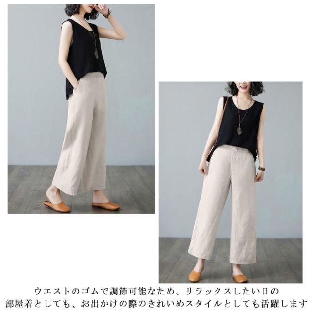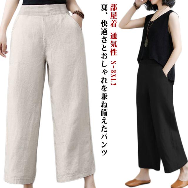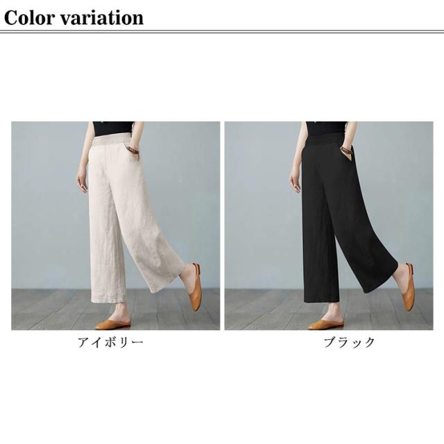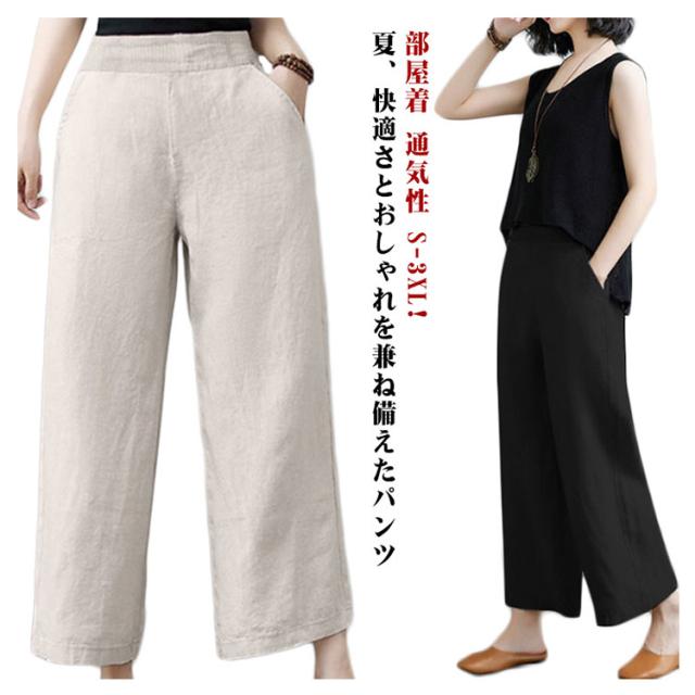 ゆったり 体型カバー イージーパンツ レディース コットン ボトムス 涼しい リネン 部屋着 リネン 春夏 大きいサイズ ズボン ウェストゴム 森ガール 綿麻 涼しい ワイドパンツ 薄手 リラックス ナチュラル カジュアル パンツ 通気性 きれいめ 春 夏 上品