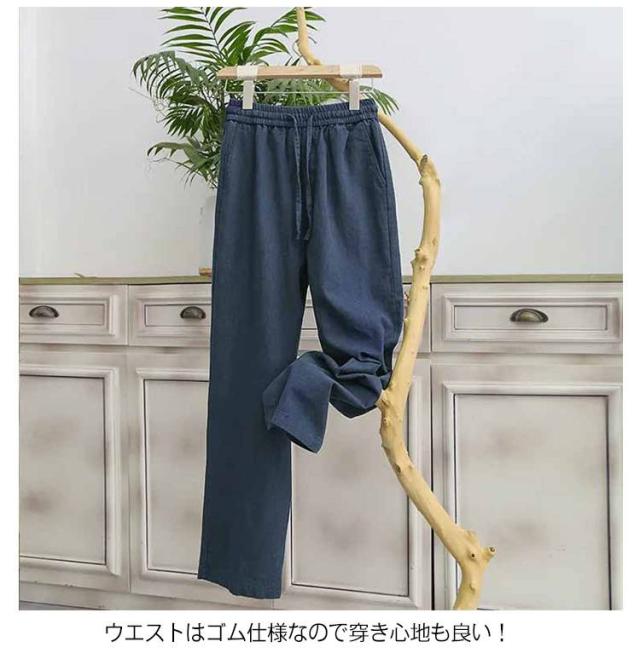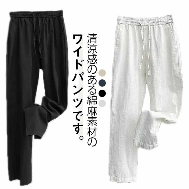 イージーパンツ 夏 夏物 リネンパンツ 涼しい カジュアルパンツ ワイドパンツ 綿麻パンツ ロングパンツ 無地 チノパン ゆとり ウエストゴム 麻パンツ 春服 リネン混 薄手 おしゃれ ボトムス シンプル 夏物 チノパン メンズ