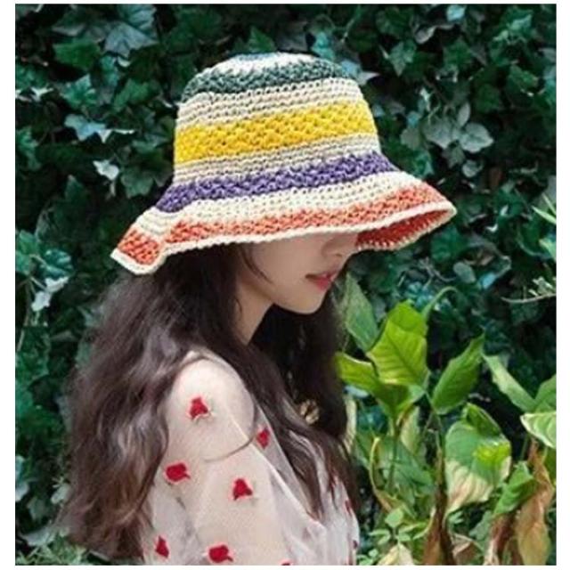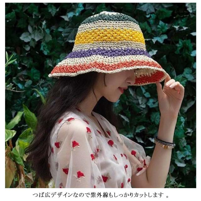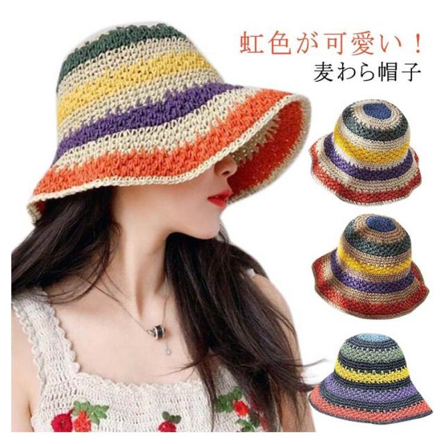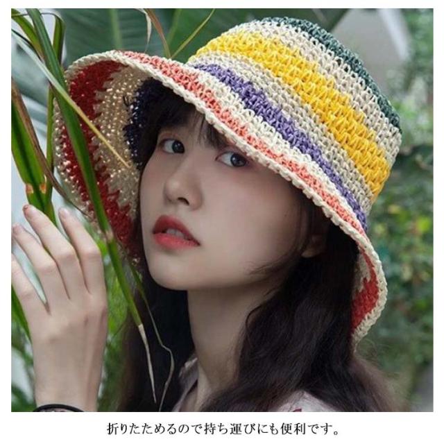 日除け帽子 夏 麦わら帽子 虹色 バケットハット 可愛い つば広 UVカット 帽子 レインボー 折りたたみ 通気性 紫外線対策 春 カラフル 夏用 日よけ帽子 小顔効果 UPF50+ 日焼け防止 リゾート ビーチ 旅行 レディース