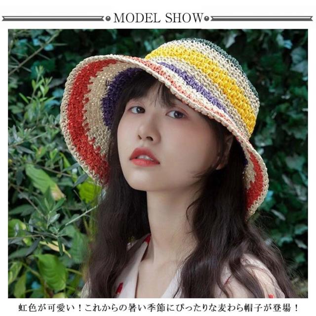 | 虹色が可愛い!これからの暑い季節にぴったりな麦わら帽子が登場! つば広デザインなので紫外線もしっかりカットします 。 折りたためるので持ち運びにも便利です。 カラフルなアイテムでいつものコーデにプラスするだけで華やかで明るいイメージを楽しむことができます。 | |