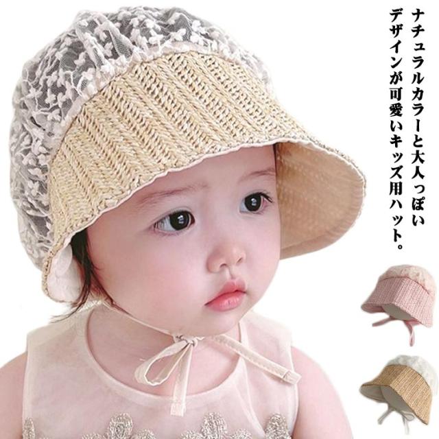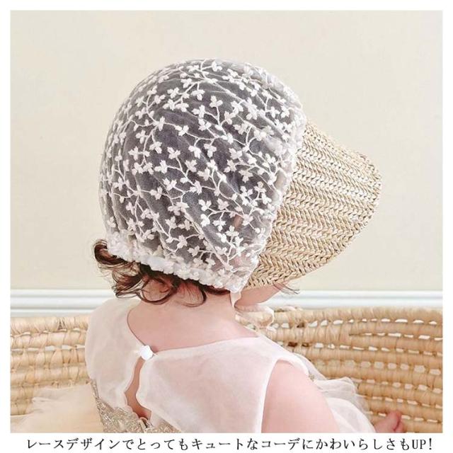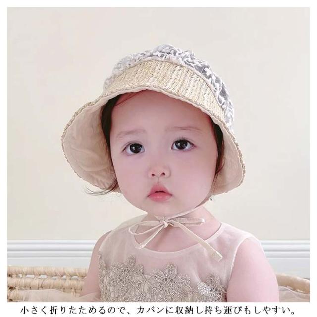 紫外線対策 麦わら帽子 夏用 サンバイザー 日よけ ベビー 帽子 日焼け対策 日除け ベビー帽子 帽子 ペーパーハット 子供帽子 赤ちゃん お出かけ お散歩 つば広 夏用 折りたたみ 軽量 レース 持ち運び便利 旅行 アウトドア 春夏 キッズ