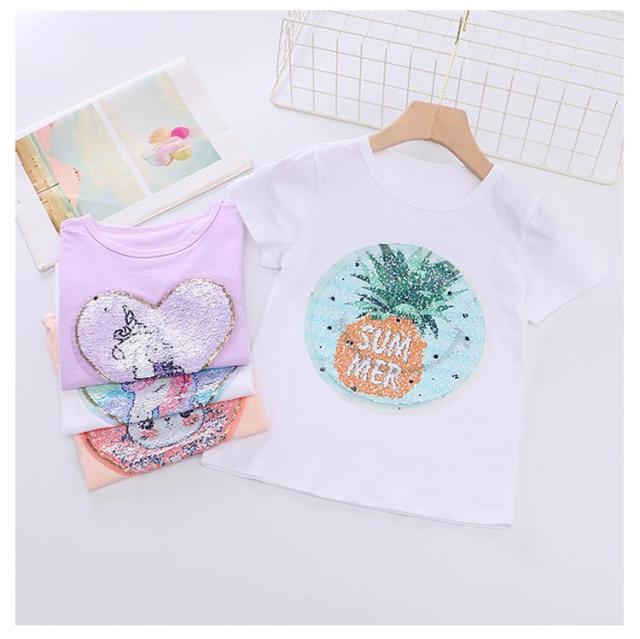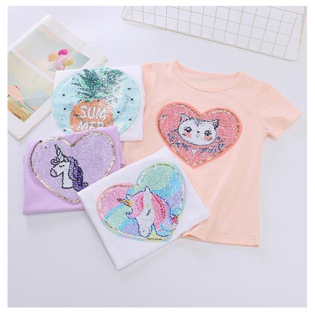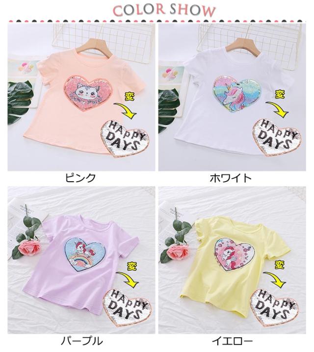 ねこ キッズ ダンス衣装 変色スパンコール Tシャツ スパンコール キッズ 女の子 130cm 送料無料 tシャツ 丸首 100cm 110cm 120cm 子供服 140cm ユニコーン 演出服 可愛い 夏 ヒップホップ Uネック マルチカラー 虹色 おしゃれ ユニコーン 半袖