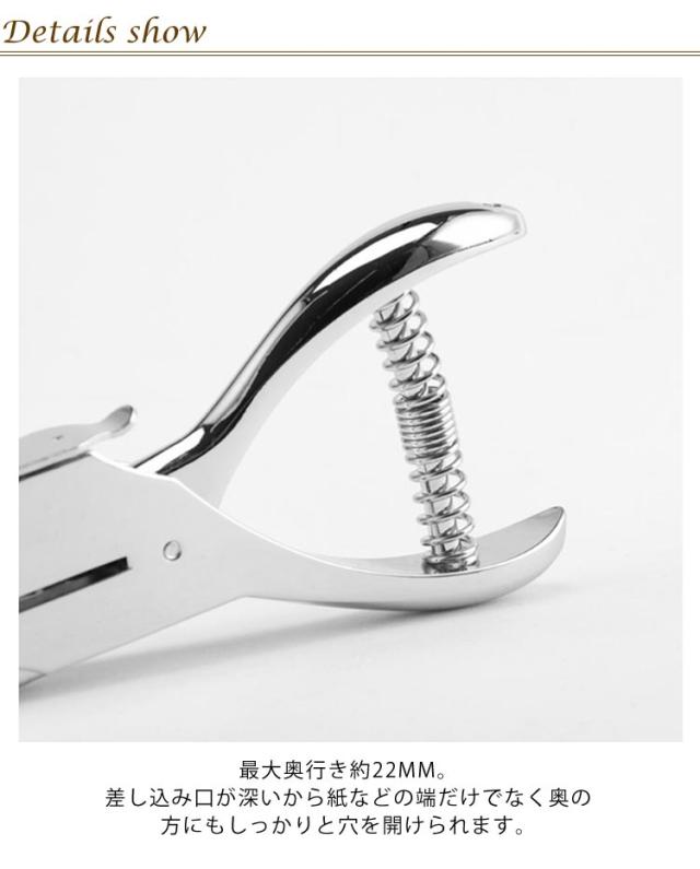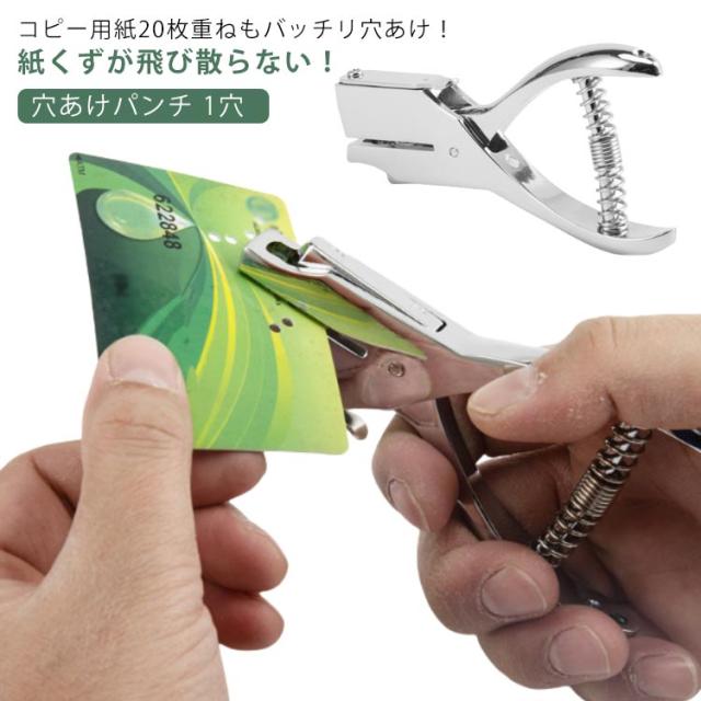 | 紙くずが飛び散らない! コピー用紙20枚重ねもバッチリ穴あけ! 穴あけパンチ 1穴 表面はクロム処理で光沢があり、錆びにくいです。 そして、高品質のばねが付いていますので、パンチングは手間がかからず、心配もありません。 (穴の端から中心まで) 一度に最大20枚のコピー用紙を直径3mm穴を綺麗に貫通できます。 最大奥行き約22mm。差し込み口が深いから紙などの端だけでなく奥の方にもしっかりと穴を開けられます。 ごみ処理も簡単!ダストボックスー体型だから破片が散らばる心配はなし!フタを開けて捨てればあっという間に片付け完了! 紙以外の素材でも大活躍!オフィスシーンだけでなくDIYなどでも活用できます。 | |