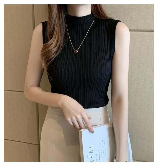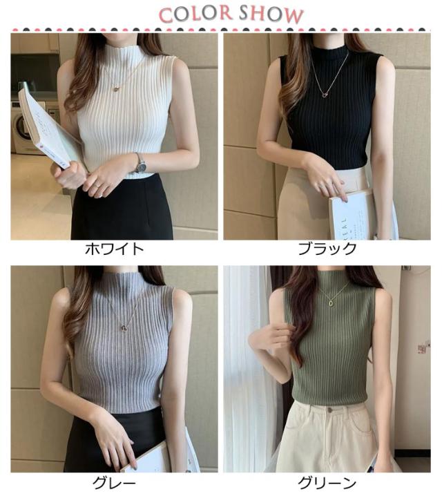 ストライプ柄 夏 レディース コーデ ベスト ニット 夏 秋 レディース 春 伸縮性 サマーニット ハイネック ノースリーブ 袖なし ベスト スリム ストレッチ フィット ノースリーブ トップス レディース ニットベスト 無地 韓国風 春夏 細身 タイト 夏