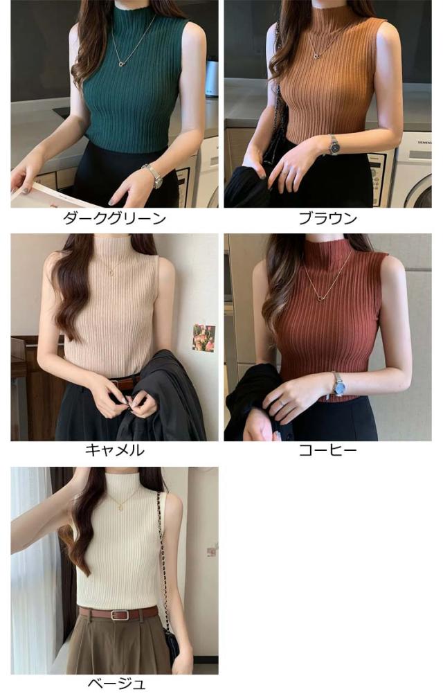 | 9colors×5size 太めリブハイネックノースリーブニットプルオーバー ストレッチ性があり軽やかなコットン素材を使用 さりげない肌見せが女性らしい印象に | |