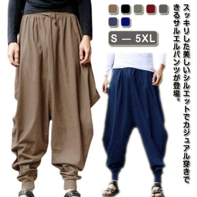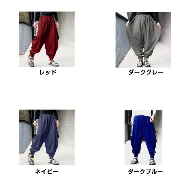 ヒップホップ サルエルパンツ 裾ゴム ワイドパンツ サルエル ダンス ウエストゴム 無地 ロング丈 大きいサイズ メンズ ハロンパンツ パンツ リラックス サルエルパンツ ズボン エスニック アラジンパンツ ハマーパンツ ロング カジュアル ダンス