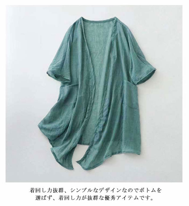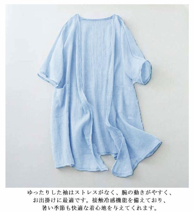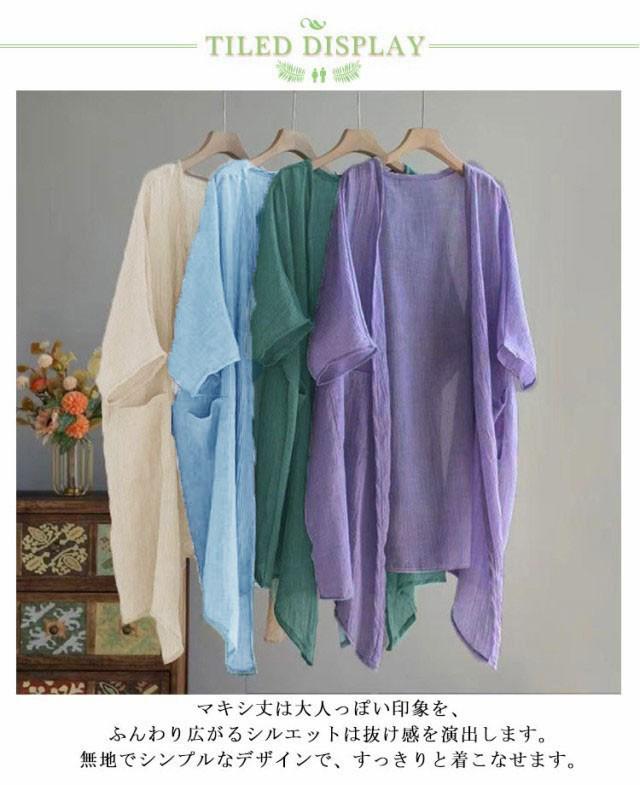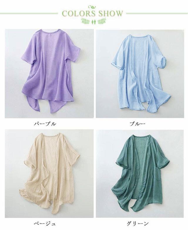 ロング 夏用 シアーカーディガン uv 薄手 UVカット 大きめ 冷感 ひんやり ロングカーディガン 半袖カーディガン 薄手カーディガン パープル 羽織 レディース 二の腕カバー 日焼け対策 透け感 綿麻風 羽織り シアーカーディガン ブルー ベージュ
