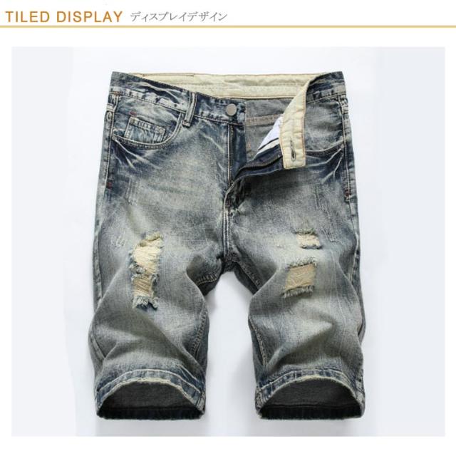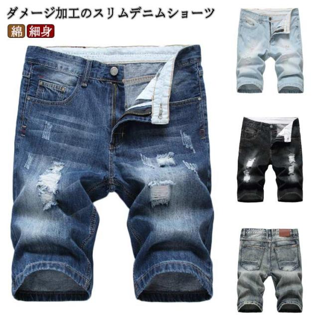 ショートパンツ デニムパンツ ハーフパンツ ジーパン 細身 スリム メンズ ショーツ 綿 デニムパンツ 膝上 スリム ダメージ加工 短パン コットン カジュアル 父の日