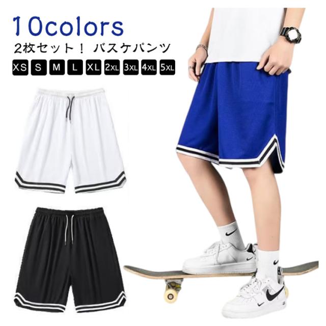 バスパン ショートパンツ メンズ ズボン 軽量 ハーフパンツ 無地 2枚セット!バスケパンツ 短パン 速乾 バスケ ズボン 接触冷感 ジュニア スポーツ ランニングパンツ ドライ 運動着 大きいサイズ 夏 運動会 体育祭 トレーニング