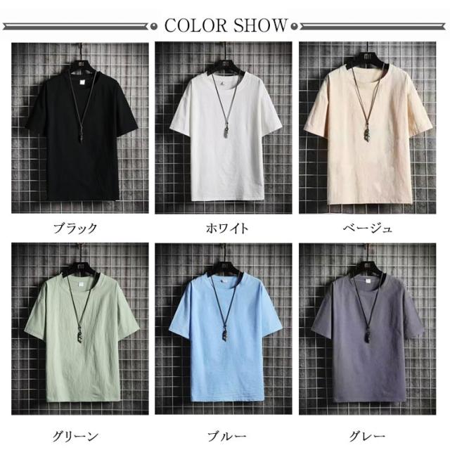 | 【全6色】【M〜XXXXXL】 シンプルな無地のリネン調半袖Tシャツです。 シンプルで洗練されたデザインのこのTシャツは、どんなスタイルにも合わせやすく、日常使いから特別な日まで幅広く活躍します。 | |