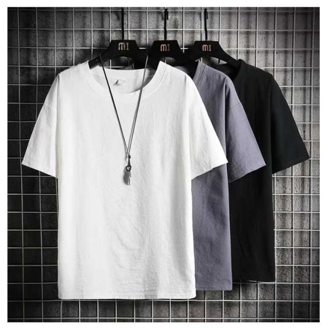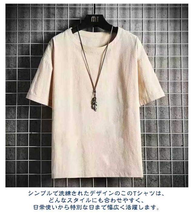 綿麻風 リネン調 夏 メンズ 白tシャツ 半袖 夏服 黒 tシャツ クルーネック シンプル 大きいサイズ ティーシャツ ラウンドネック ブラック 半袖Tシャツ グレー リネン調 ホワイト ルームウェア 無地 部屋着 メンズファッション