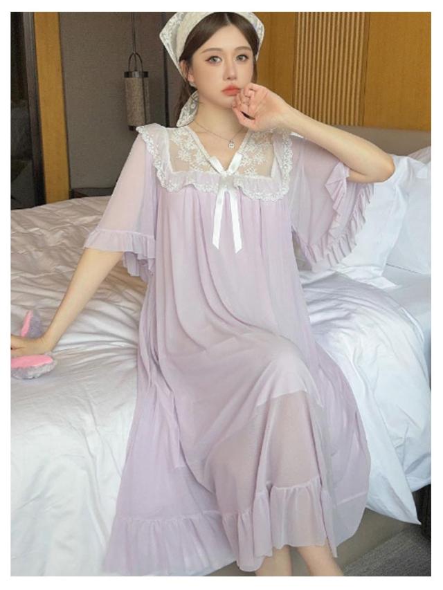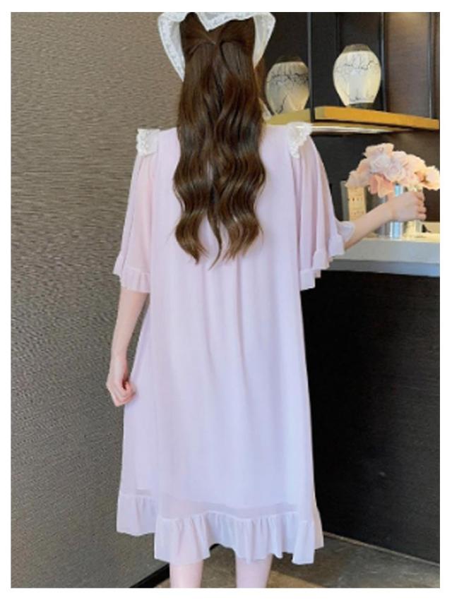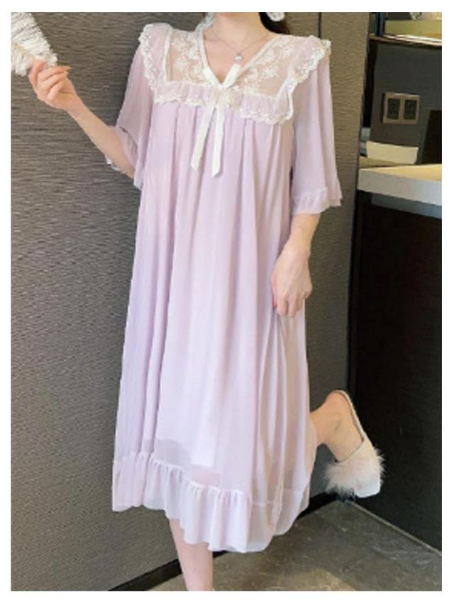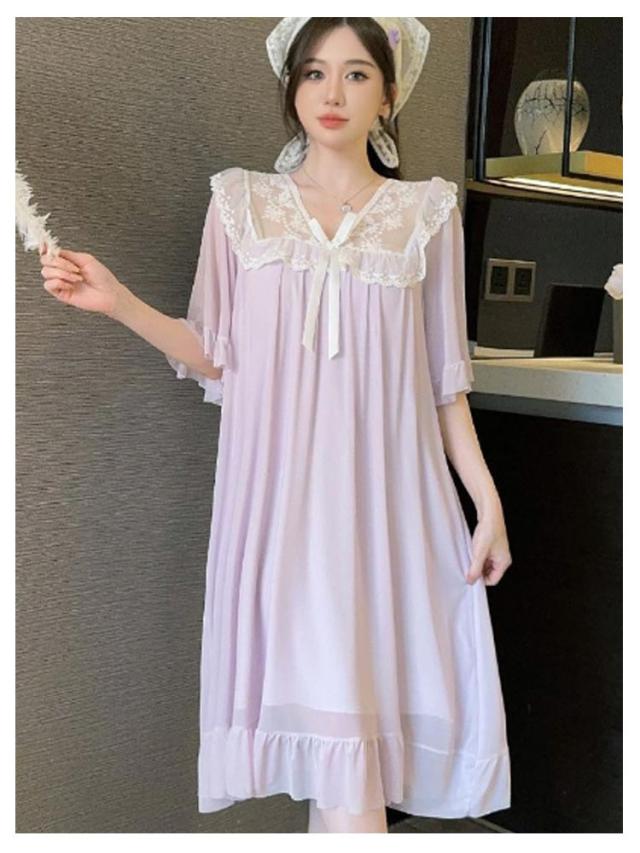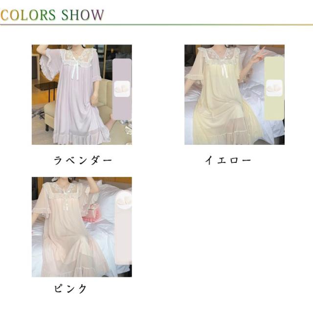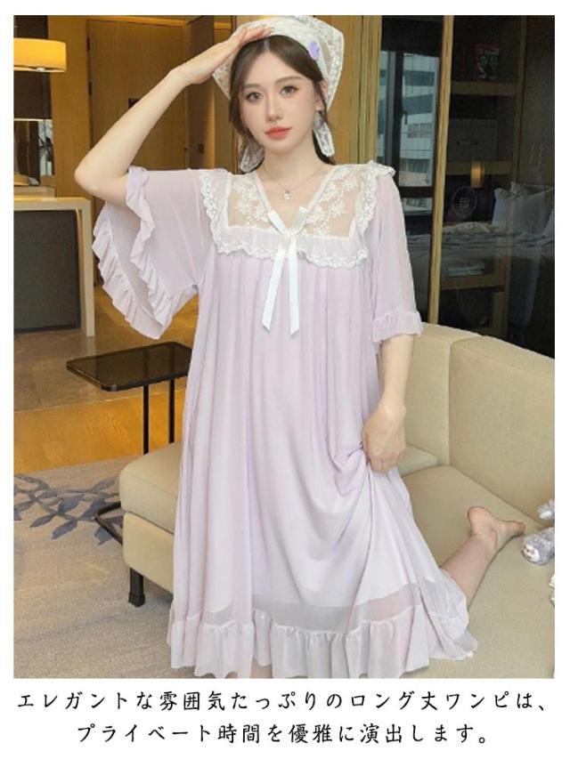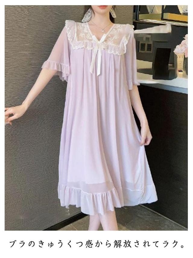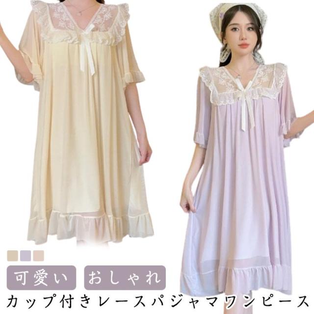 ルームウェア レディース パジャマ 部屋着 ワンピース 可愛い レース リボン Vネック 半袖 ナイトドレス かわいい カップ付き おしゃれ