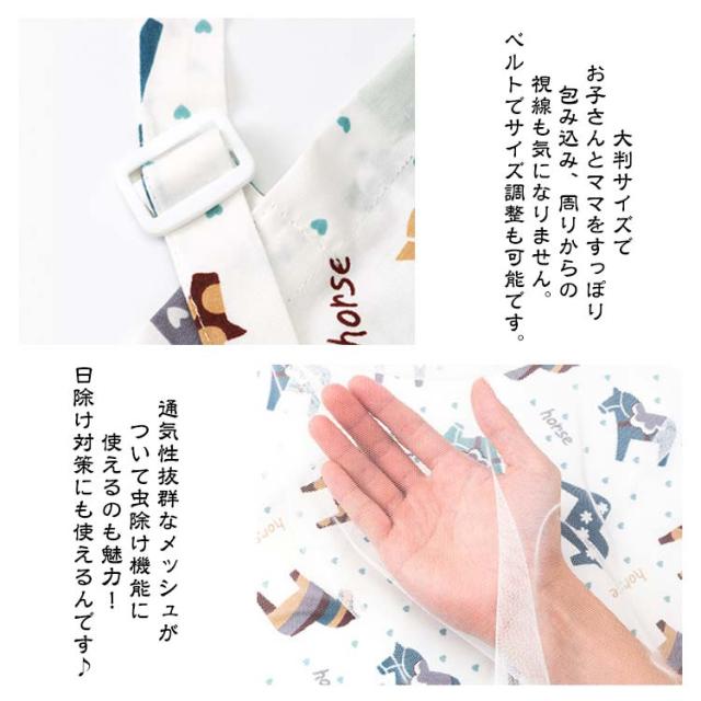 | 【授乳ケープ】【綿】【大判】【6color】 授乳ケープは外出先で授乳するときに、サッと簡単に上半身を隠せる便利な授乳グッズです。 胸部分にソフトワイヤーが入っているので、お子さんの表情を確認しながら授乳ができて親子で安心してご利用いただけます。 赤ちゃんにやさしいコットン素材。通気性がよく柔らかくて丈夫。洗濯機で丸洗いできる授乳ケープ 大判サイズでお子さんとママをすっぽり包み込み、周りからの視線も気になりません。ベルトでサイズ調整も可能です。 通気性抜群なメッシュがついて虫除け機能に使えるのも魅力!日除け対策にも使えるんです♪ 軽く畳むとコンパクトになるので持ち運びも楽ちん。 | |
