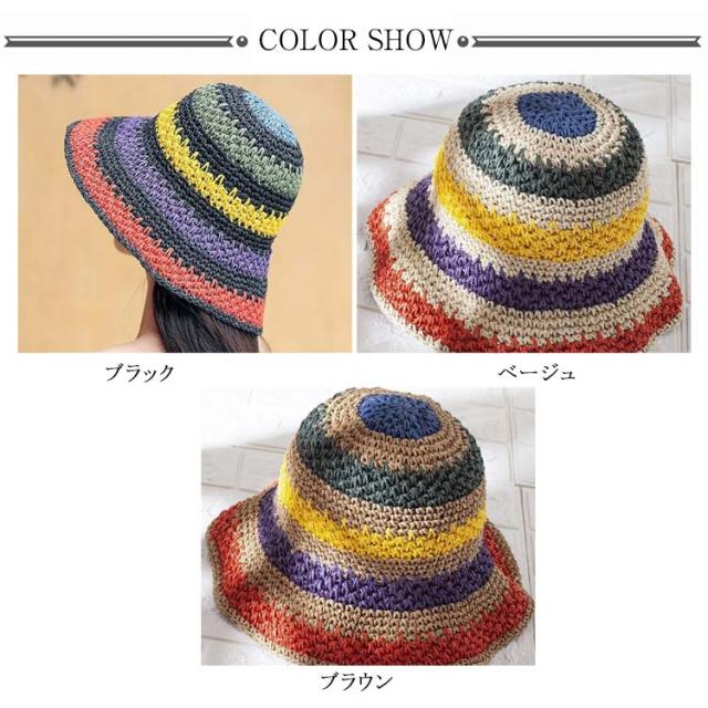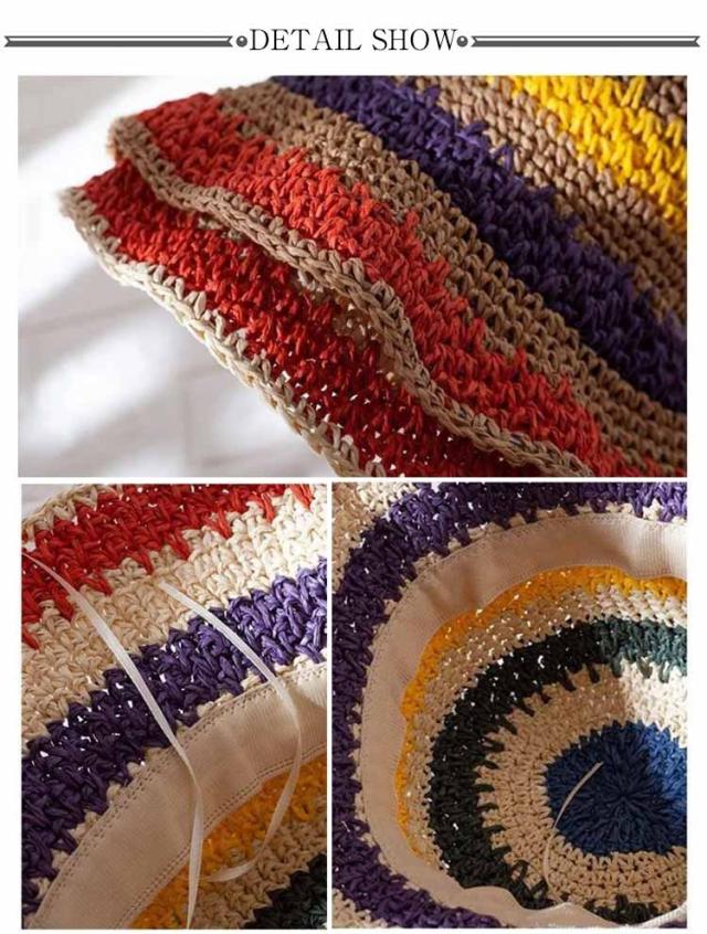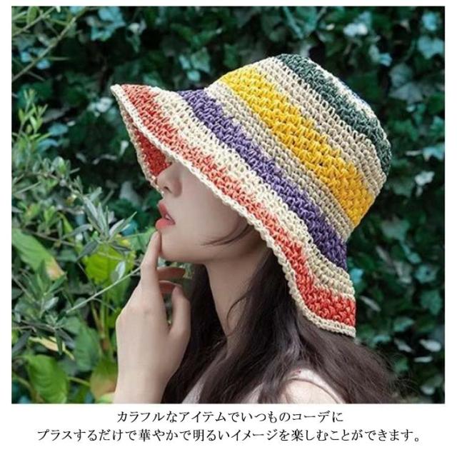帽子 UVカット カラフル バケットハット 夏 レディース つば広 麦わら帽子 日除け帽子 紫外線対策 春 レインボー 可愛い 虹色 UPF50+ 夏用 日よけ帽子 小顔効果 麦わら帽子 日焼け防止 リゾート ビーチ 旅行 通気性