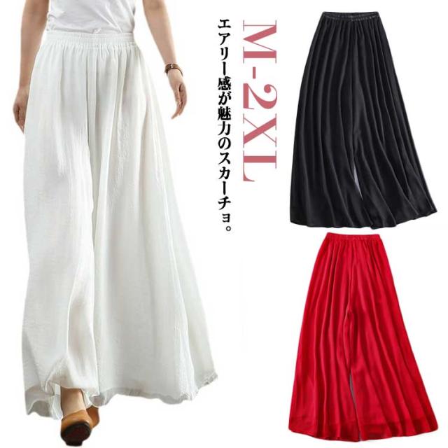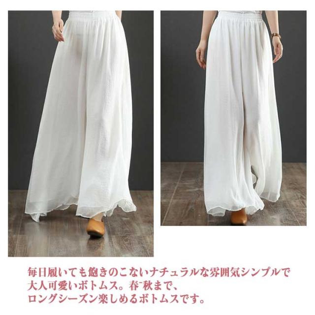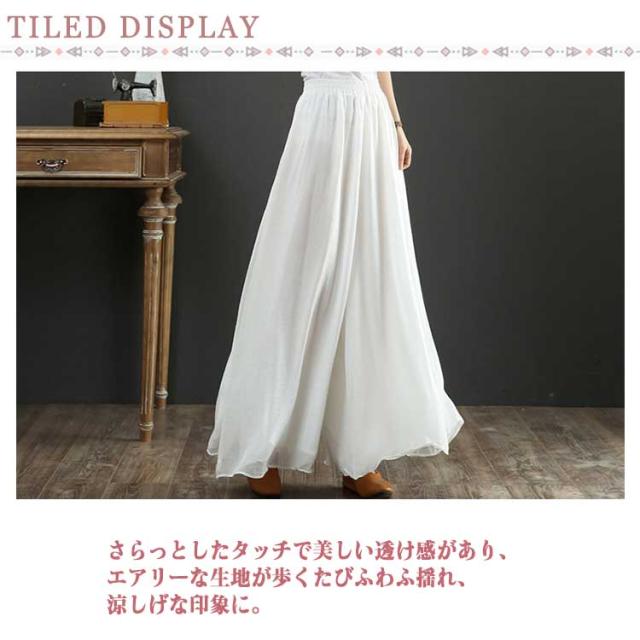 スカーチョ レディース シアーパンツ 裏地付き ウェストゴム シフォンワイドパンツ スカンツ スカーチョ エアーパンツ イージーパンツ ガウチョパンツ ワイドパンツ 涼しい ゆったり 無地 スカート見え 送料無料