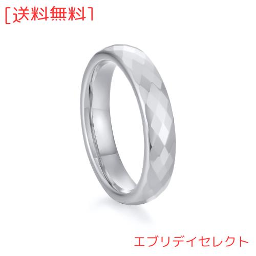 「Rockyu 指輪」 タングステン リング シルバー指輪 細い多面カット 幅4mm 17号指輪1個単品販売 タングステン比重:金とほぼ同じ、硬度:ダイヤモンドに匹敵、タングステンは耐久性に優れ、傷がつきにくいため、いつまでもその高度な輝きを失いません。