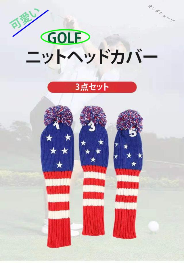ゴルフドライバーカバー ゴルフヘッドカバー ニットヘッドカバー ゴルフ用品 ゴルフクラブ クラブカバー ニット製 3点セット 数字ペンダント付け