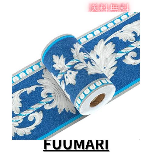 ◆商品名:Yoillione トリムボーダー マスキングテープ 壁紙シール インテリアシール ブルー はがせる 浮彫 凹凸 藤花 リメイクシート キッチンシー