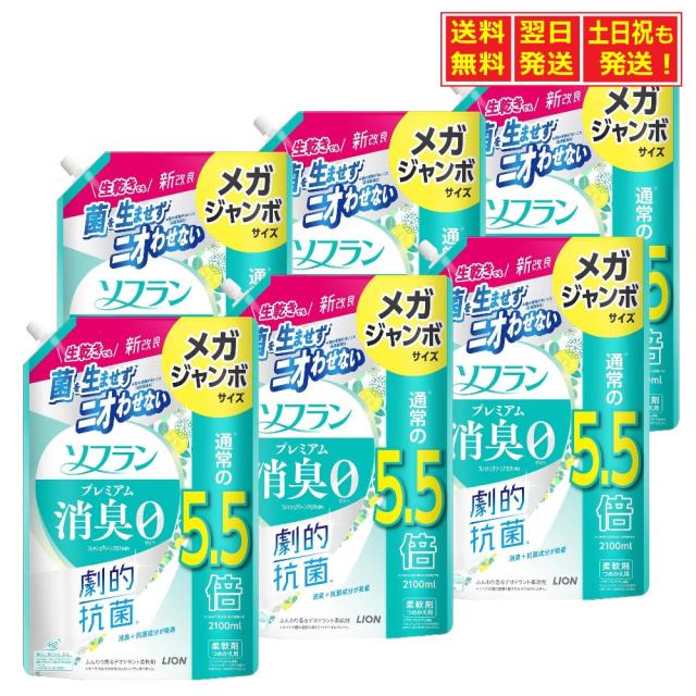 大容量 まとめ買い ソフラン プレミアム消臭 柔軟剤 詰め替え フレッシュグリーンアロマの香り メガジャンボ 2100ml×6個