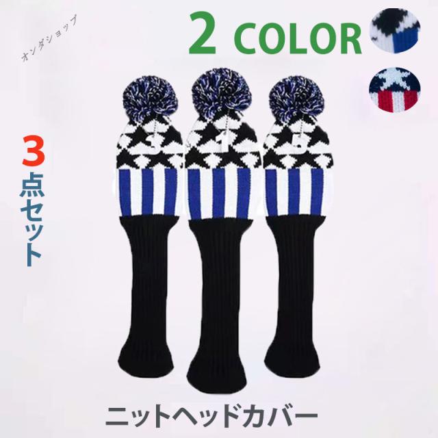 ゴルフドライバーカバー ニットヘッドカバー ヘッドカバー ゴルフ用品 ゴルフクラブ クラブカバー ニット製 3点セット 数字ペンダント付け 可愛い
