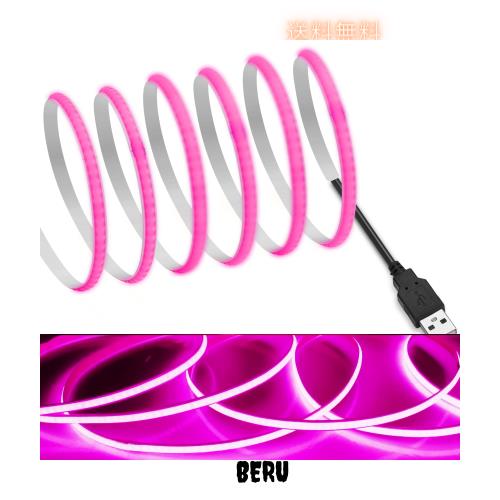 ◆商品名:【RYE】 COB テープライトLEDストリップライトフレキシブル 高密度 幅5mm 隠れたLEDテープライト2m 320LEDs/m ピンク DC5V 180°発光CRI>