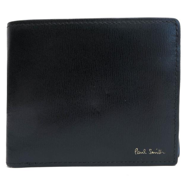 ○ポールスミス Paul Smith 牛革 財布 P305 シティエンボス CITY EMBOSS WALLET ストライプ 小銭入れあり 二つ折り 定番 メンズ 【 中古