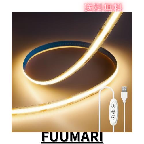ShineBurky ledテープライト COB 高密度 usb給電 2m テープ照明 10段階調光 320LEDs/m カット可能 両面テープ設置 高輝度 テープライト c