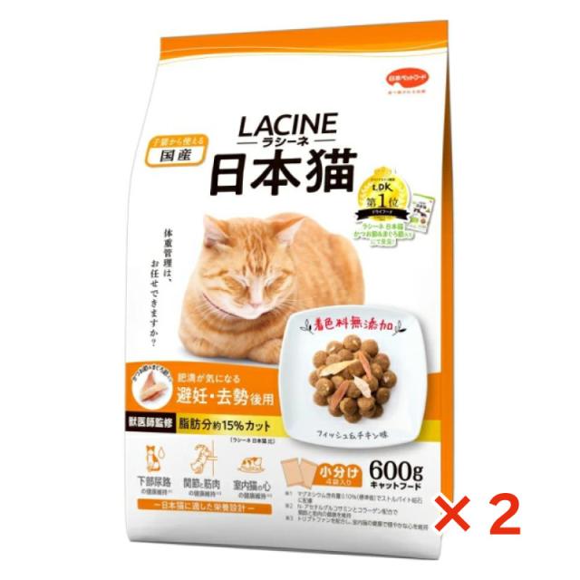 【セット販売】 ラシーネ 猫 ドライ 日本猫 避妊・去勢後用 肥満が気になる日本猫 600g(150g×4袋入) 日本ペットフード 獣医師監修 着色料無添加 全成長段階総合栄養食 国産 (×2セット)