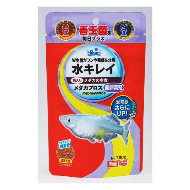 ハイカロリーで高栄養な配合のメダカ専用フレーク。W生菌(ひかり菌・GB菌)がフンや残餌を分解します。