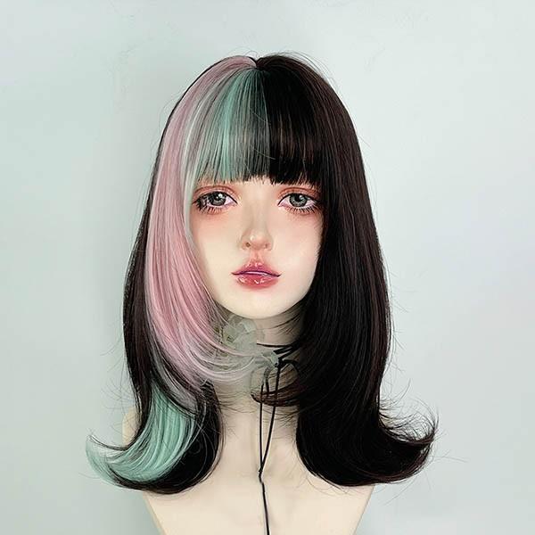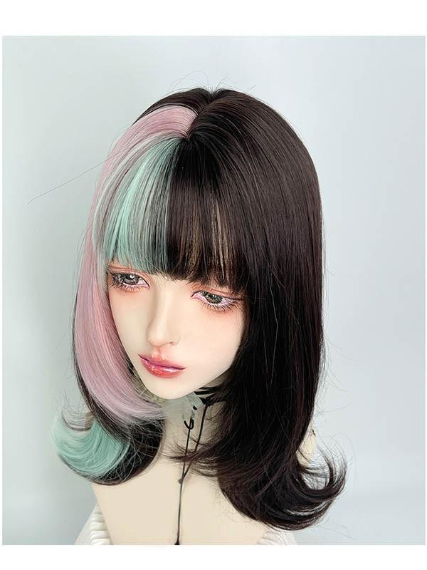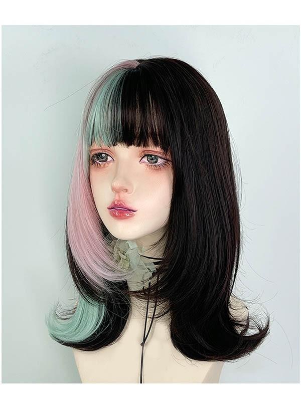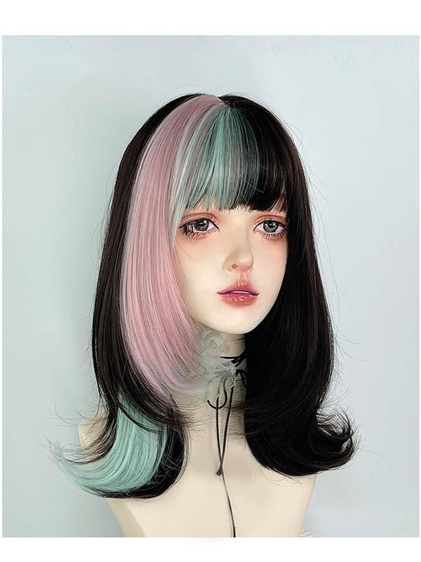 ウィッグ レディース フルウィッグ かつら フルウィッグ メッシュ ミディアムウィッグ コスプレウィッグ ミディアムヘア 演劇 自然 ぱっつん前髪 ロリータ コスプレ おしゃれ 可愛い 耐熱ウィッグ 小顔効果抜群 コスチューム 文化祭 学園祭 イベント dp178x1x1jc