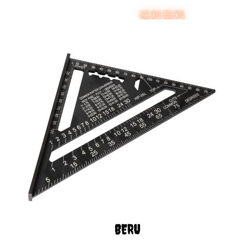 Beslands三角定規 木工用 丸鋸定規 18*18cm 両面目盛り アルミ合金 ブラック 分度器 建築 製図 大工道具 測量用品 0-90度