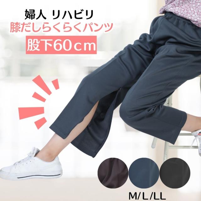 シニアファッション パンツ レディース ズボン おばあちゃん 80代 70代 柔らか ウエストゴム 人気 総ゴム リハビリ らくらくパンツ 通院 介護 膝だし 敬老の日