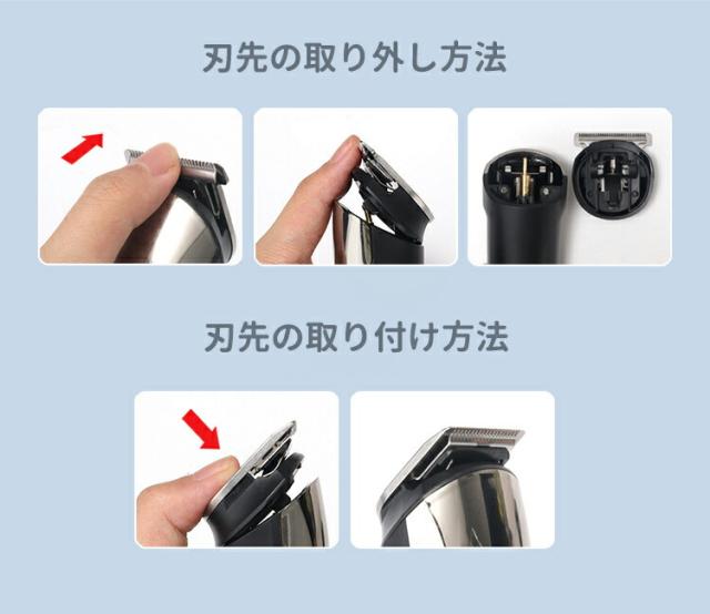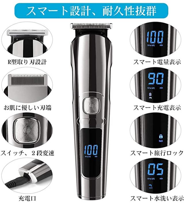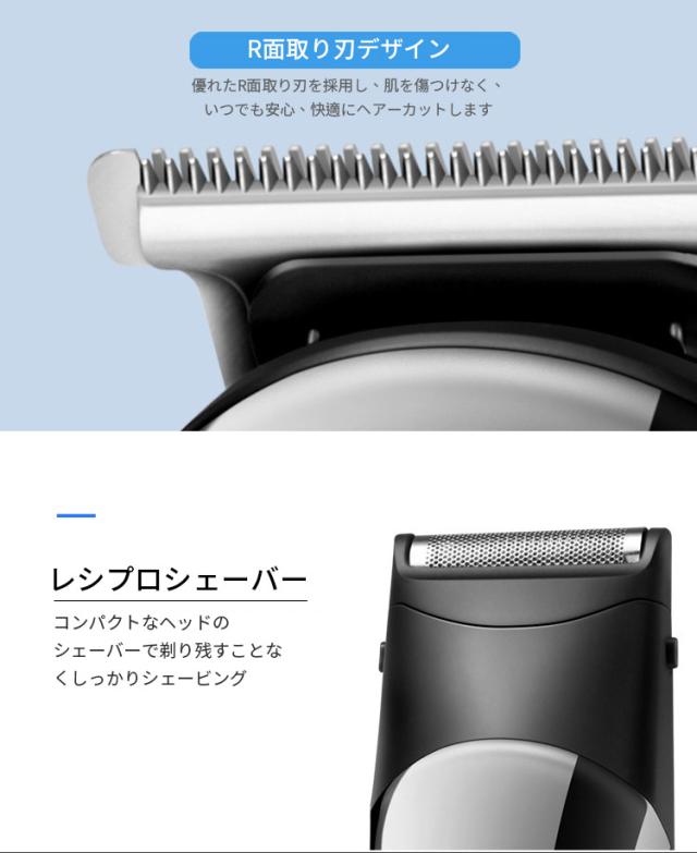 防水設計を採用、本体のヘッド部分を取り外して、水洗いで清潔可能、お手入れ簡単です。 バリカン機能だけではなく、髭剃り、ボディシェーバーの機能も備え、軽め設計で疲れにくい重さであり子供、家庭、理髪店、業務、出張用などの場合に適用します。
