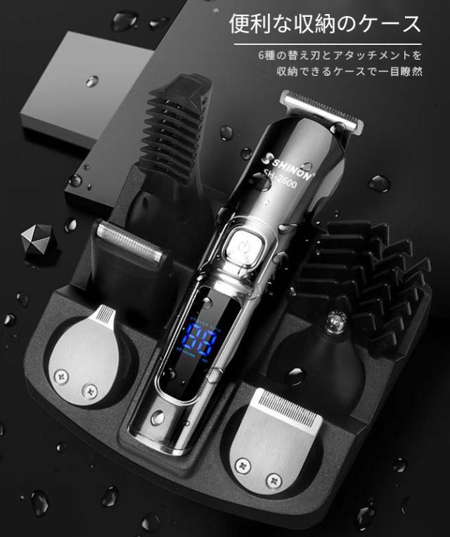 バリカン ヘアカッター IPX7撥水 6in1 usb充電式 電動 髪の毛 家庭用 ヒゲ取り 多機能 全身防水 水洗い 散髪 散髪用 メンズ 鼻毛カッター ラインバリカン ヒゲトリマー 父の日 プロ仕様 ばりかん コードレス
