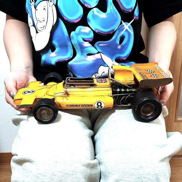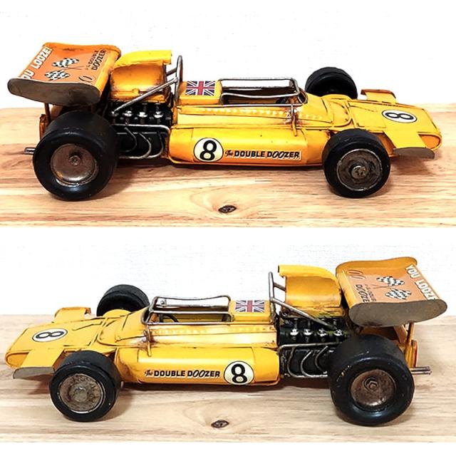 ヴィンテージカー 車 アンティーク レーシングカー イエロー 置物 ブリキ レトロ かっこいい スポーツカー ディスプレイ アメリカン
