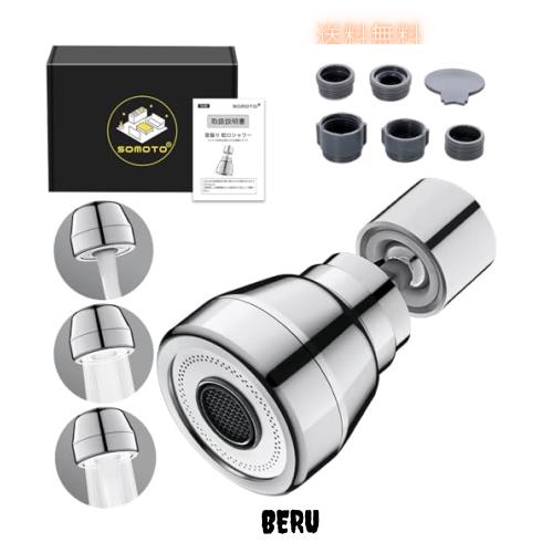 ?『回すだけで3モード切替可能』SOMOTO 水道 蛇口 シャワー は蛇口の先端に取り付けるだけで、キッチン蛇口シャワーをくるっと回すと「シャワーモード」と「混合モード」と「バブルモード」の3モードを切替可能で、楽にご使用いただけます。「シャワーモード」は直線的な少し強めの水流で汚れを落とします。増圧の機能があり、すばやくボウル、野菜、果物を洗うことができて、とても便利です。節水率も30~40%に発揮します。「バブルモード」は気泡を含んだ肌ざわりの柔らかい水流です。水が出る時に豊かな気泡が発生して水の流れが柔らかく繊細になり、水はねを有効に防止します。「混合モード」は「シャワーモード」と「バブルモード」の特徴を組み合わせた水流です。水流は柔らかく肌に優しく、同時に少し強めの水圧で汚れをしっかりと落とします。豊かな気泡が水流に含まれ、水はねを抑制し、増圧機能も搭載しています。このモードは、洗浄と節水の両方のニーズに対応し、多目的な使用に適しています。