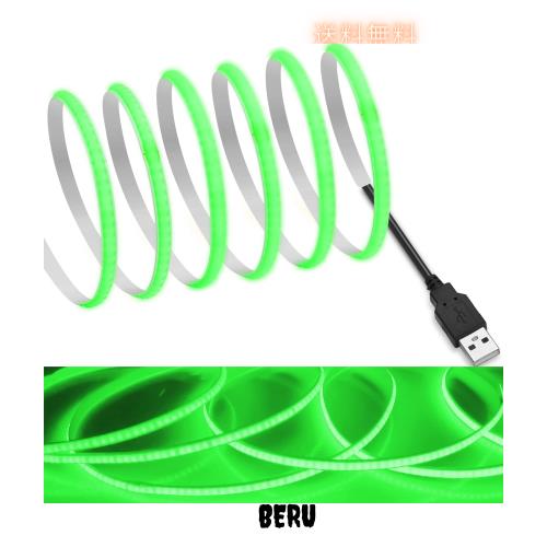 【RYE】 COB テープライトLEDストリップライトフレキシブル 高密度 幅5mm 隠れたLEDテープライト3m 320LEDs/m 緑色 DC5V 180°発光CRI>=9