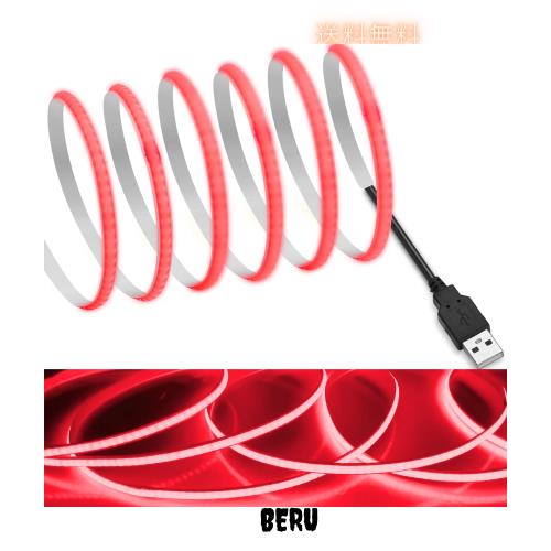 ◆商品名:【RYE】 COB テープライトLEDストリップライトフレキシブル 高密度 幅5mm 隠れたLEDテープライト3m 320LEDs/m 赤色 DC5V 180°発光CRI>=9