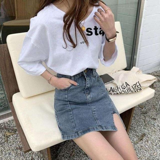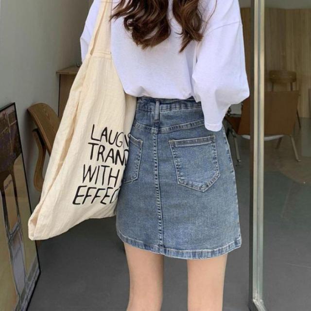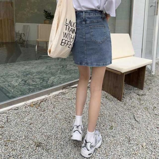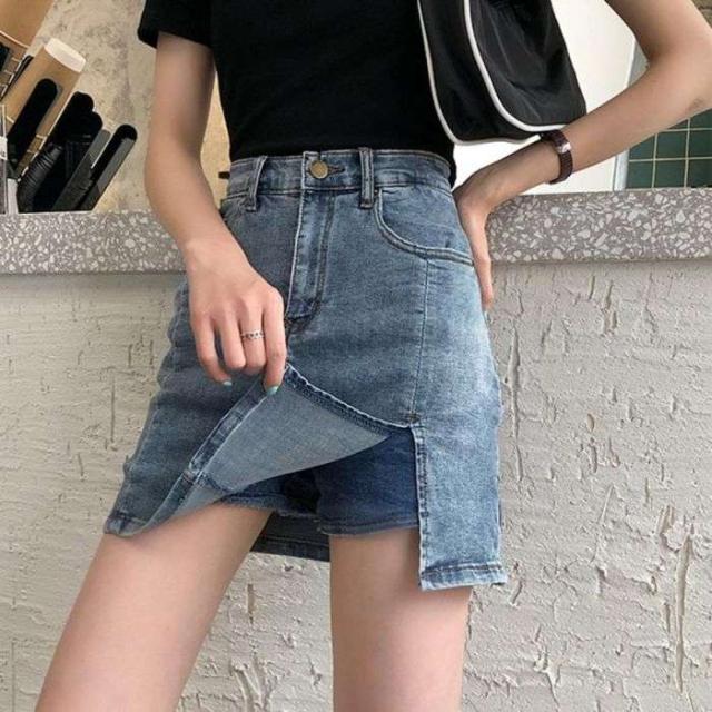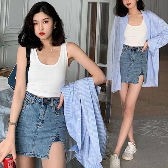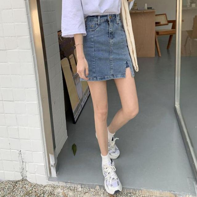 韓国 ショート丈デニムスカート スリット ハイウエストタイトスカート セクシー 着やせ 細見えボトムス オルチャン 夏服
