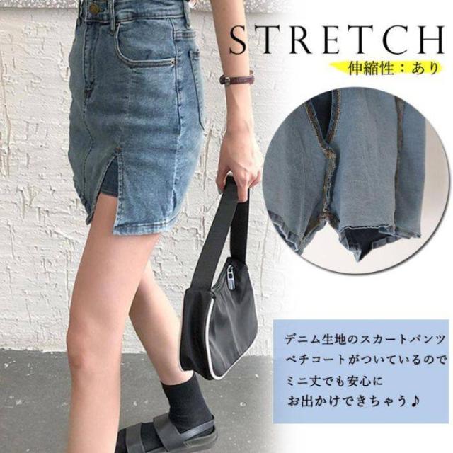 ミニ丈 キュロットスカート レディース デニム スリット入り ショート丈 スカート ハイウエスト タイトスカート 着やせ